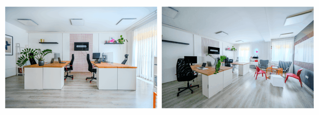Az Alfa Victor Hugo Irodaház modern kialakítása és barátságos atmoszférája tökéletesen illeszkedik a Tomorrow szellemiségéhez. Fontos volt számunkra, hogy egy olyan munkakörnyezetet teremtsünk, amely támogatja a hatékony munkát, a csapatmunkát és a folyamatos fejlődést. Nyitott tér, inspiráló közös helyiség, kényelmes tárgyaló — minden adott ahhoz, hogy a kreativitás szabadon áramoljon.